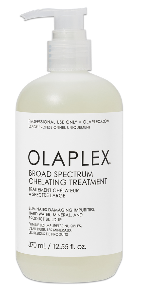 OLAPLEX Broad Spectrum Chelating Treatment je profesionální, vysoce účinné chelatační ošetření, které hloubkově čistí vlasy a odstraňuje těžké kovy, minerály, znečištění, chlór a nahromaděné produkty, aniž by vlasy zbavovalo vlhkosti a důležitých proteinů. Silná, širokospektrální chelatační směs poskytuje hloubkové projasnění pro vytvoření čistého základu pro optimální výsledky jiných chemických ošetření, které mohou být ohroženy usazeninami, jako je ošetření keratinem, barvení a trvalá. Je to nezbytný čistící krok pro klienty s usazeninami z tvrdé vody, zbytky stylingu nebo zabarvením od částic železa a mědi.