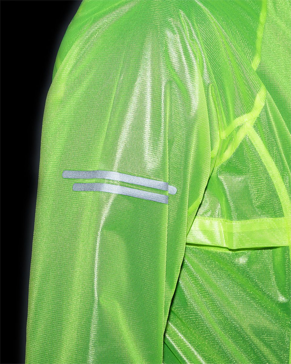 „Nouzovka“ pro cyklisty, nepromokavá a viditelná Kilpi EMERGENCY-M, proti větru i dešti! Membránový materiál SIBERIUM s vodním sloupcem 10 000mm/m2/24h je dostatečně vodě odpudivý a extrémně lehký. Prodloužený zadní díl se silikonem proti vyhrnování, je tvarován speciálně pro cyklisty. Vysoký límec má krytku brady a krku. Mezi praktické vychytávky patří: ventilační průchody v podpaží; lemy rukávů, které přiléhají k zápěstí díky zakončení gumičkou; přední dvoucestný zip pro možnost ventilace. Lehkost bundy ukazuje váha pouhých 130g, ve velikosti M. Snadno ji sbalíte do kapsy dresu. Kilpi EMERGENCY-M opatřena výraznými reflexními prvky na zádech a rukávech, a tak je dobře viditelná v šeru a ve tmě.