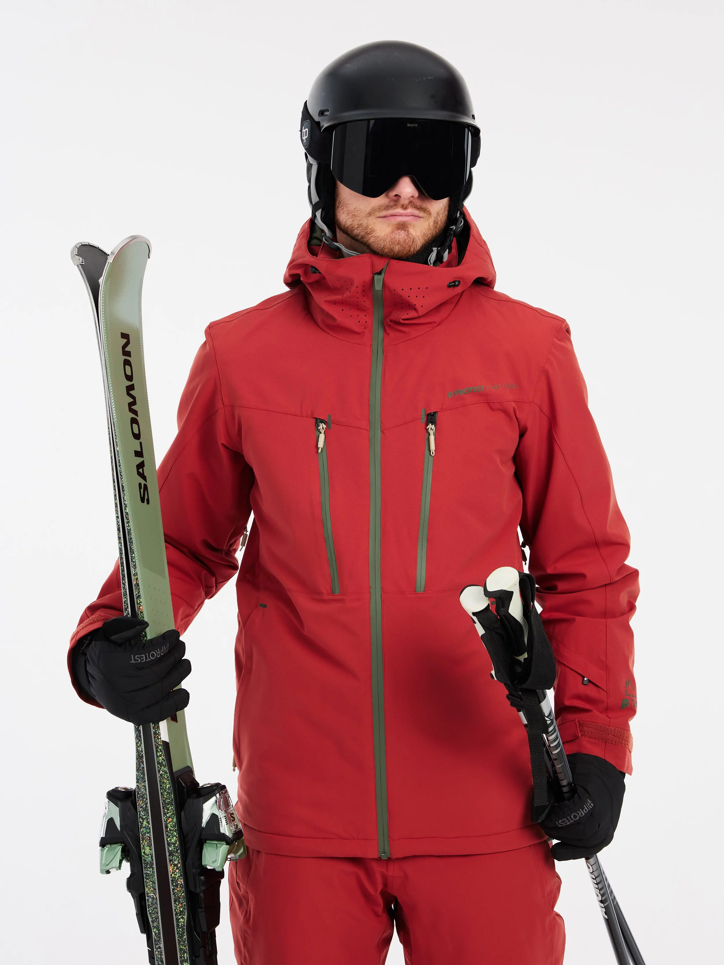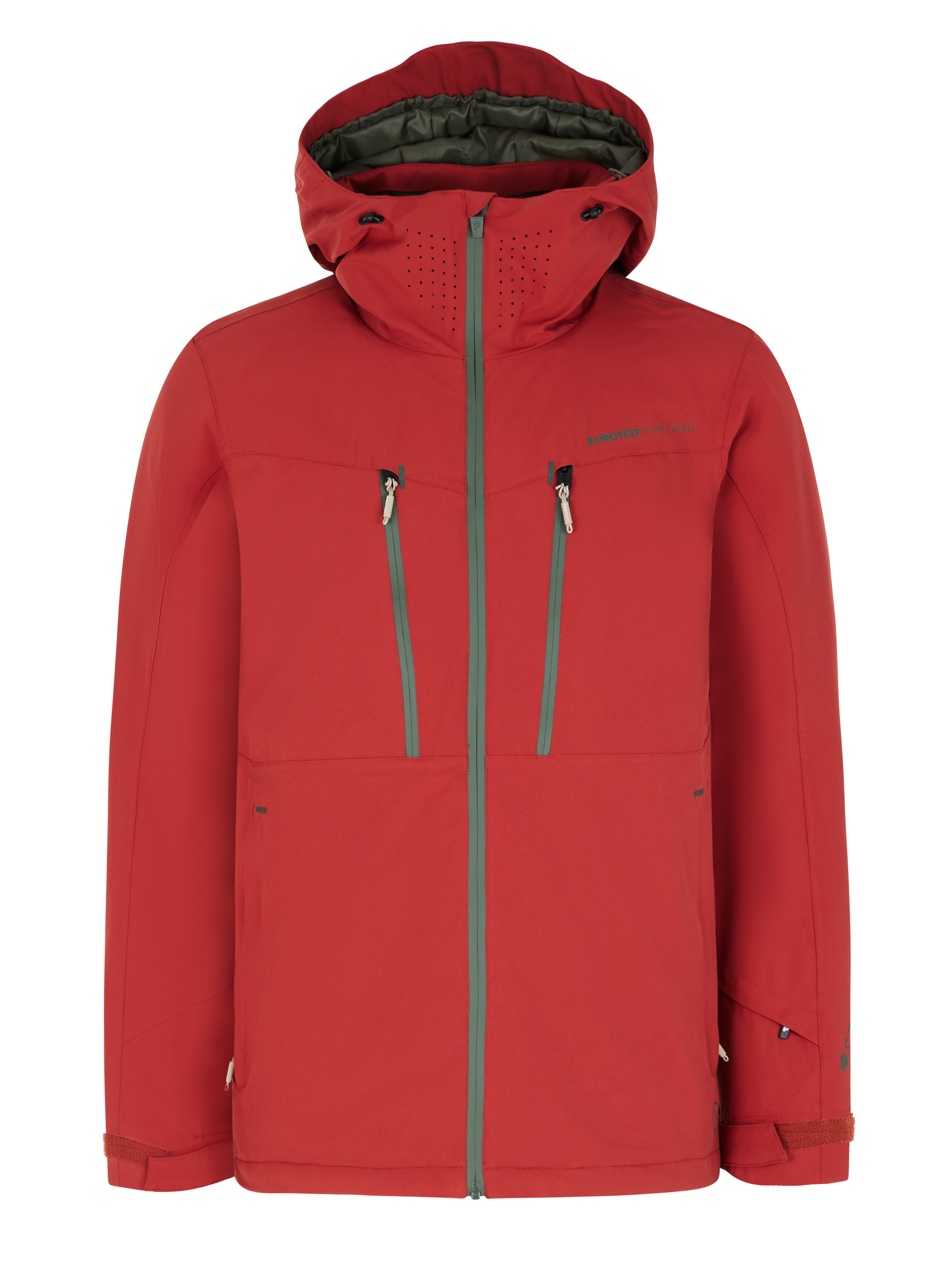 Vnitřní manžety s otvorem pro palec jsou praktické při lyžování. Světlejší zipy a logo Protest dokončují vzhled.