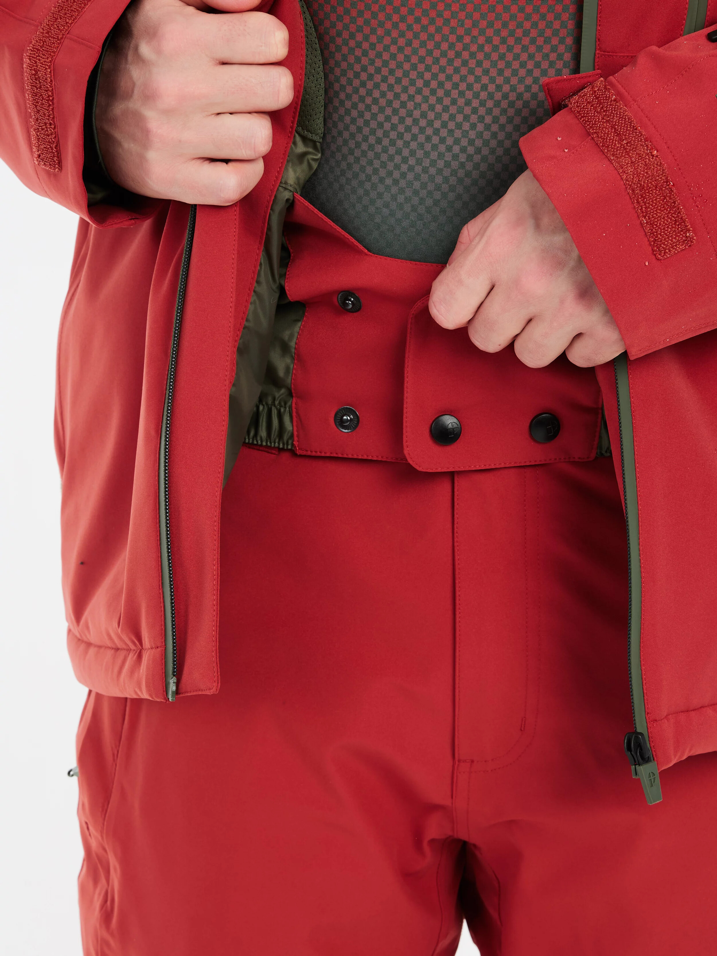 Tato bunda nabízí spoustu užitečných designových prvků, jako je helmu kompatibilní pevná kapuce s vysokým límcem, kapsa na brýle, pásek na pasu a kapsa na skipas.