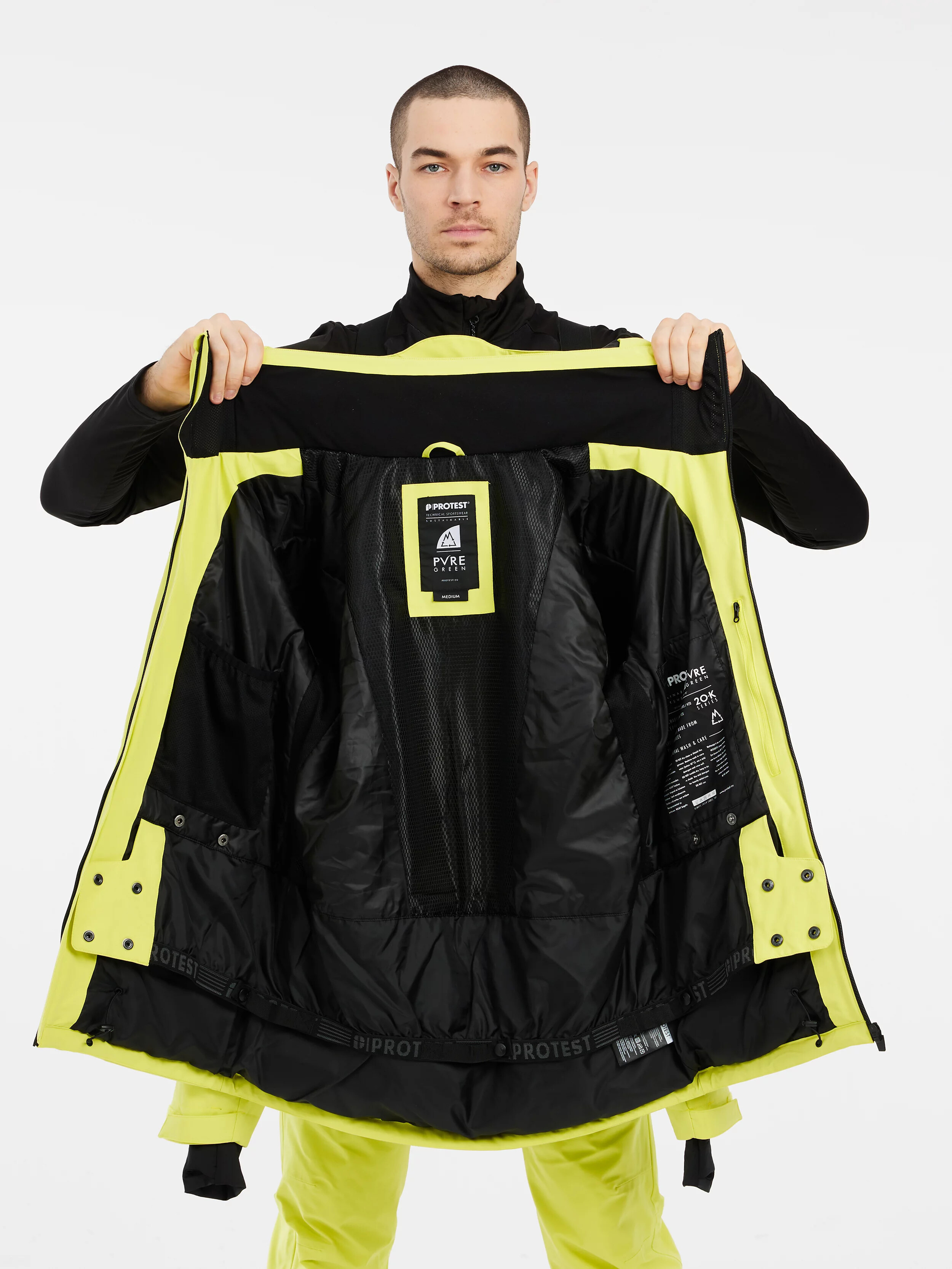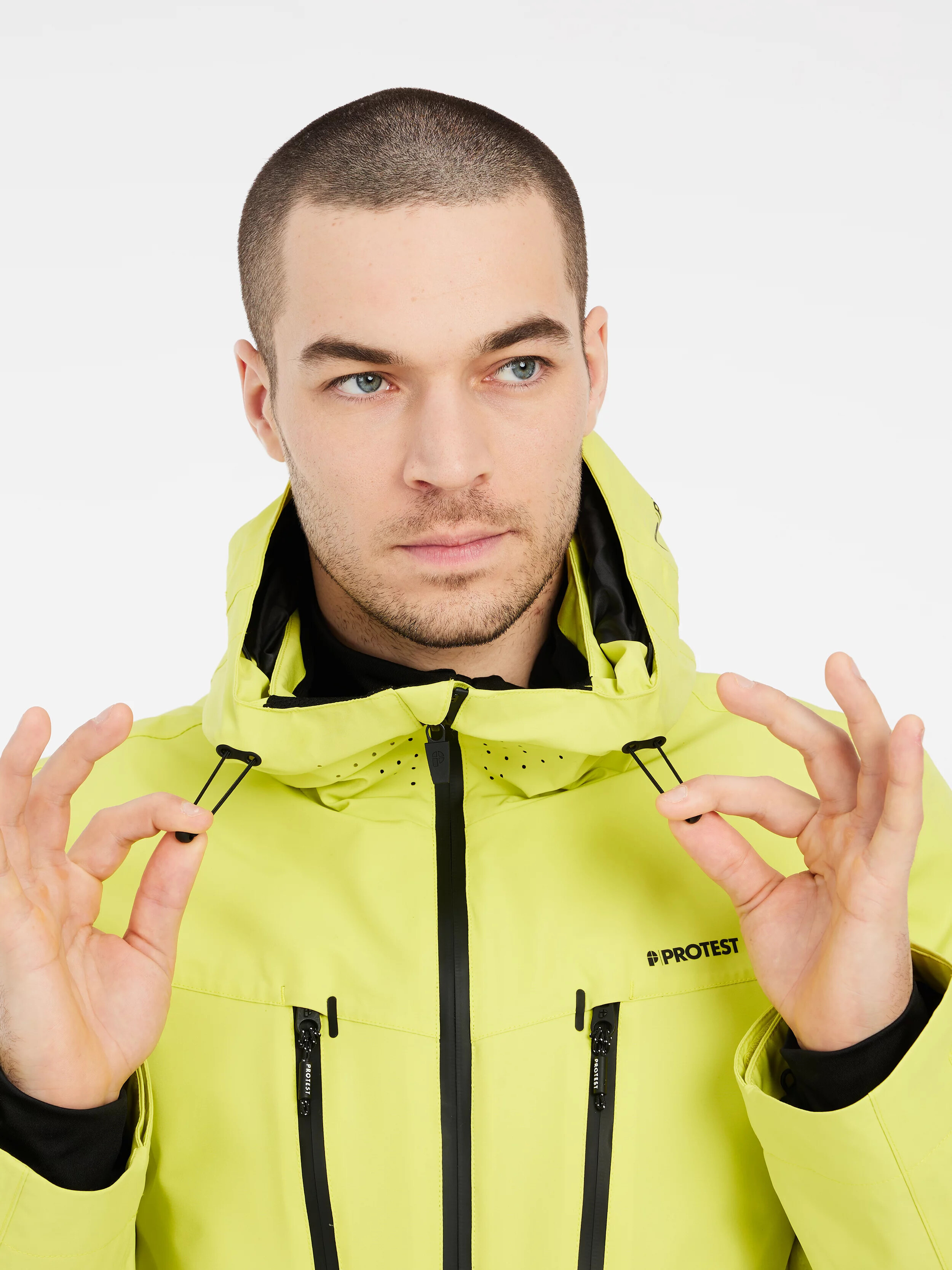 Vnitřní manžety s otvorem pro palec jsou praktické při lyžování. Světlejší zipy a logo Protest dokončují vzhled.
