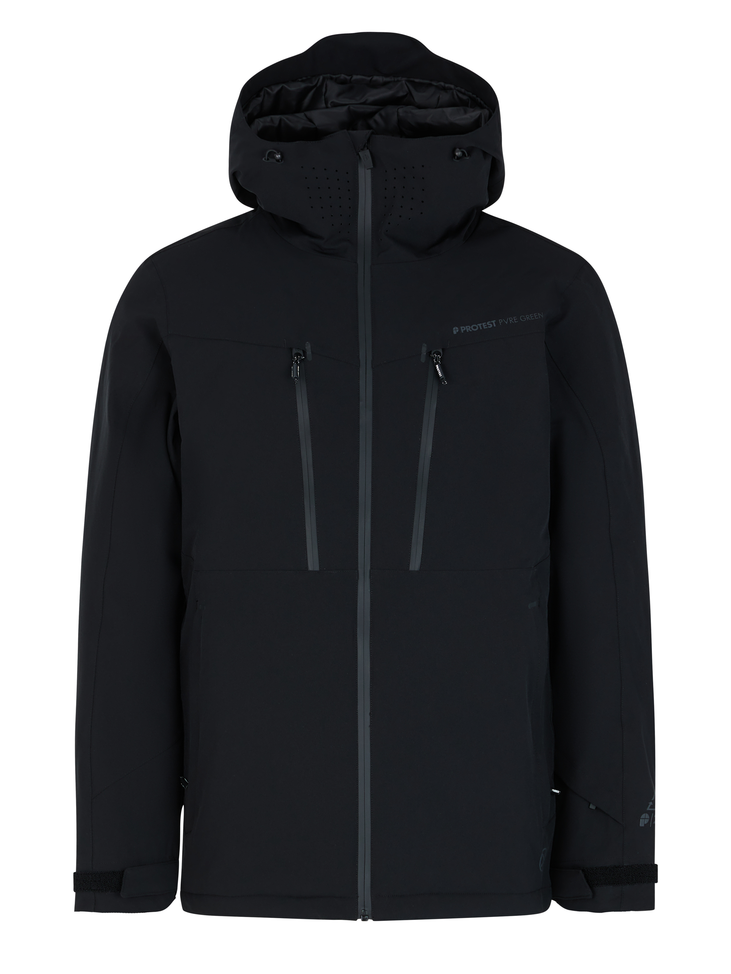 Vnitřní manžety s otvorem pro palec jsou praktické při lyžování. Světlejší zipy a logo Protest dokončují vzhled.