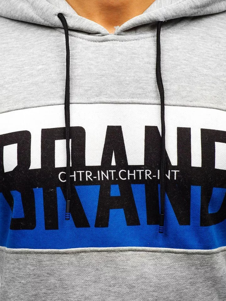 Pánská mikina"BRAND" s kapucí Denley KS1803 - šedá