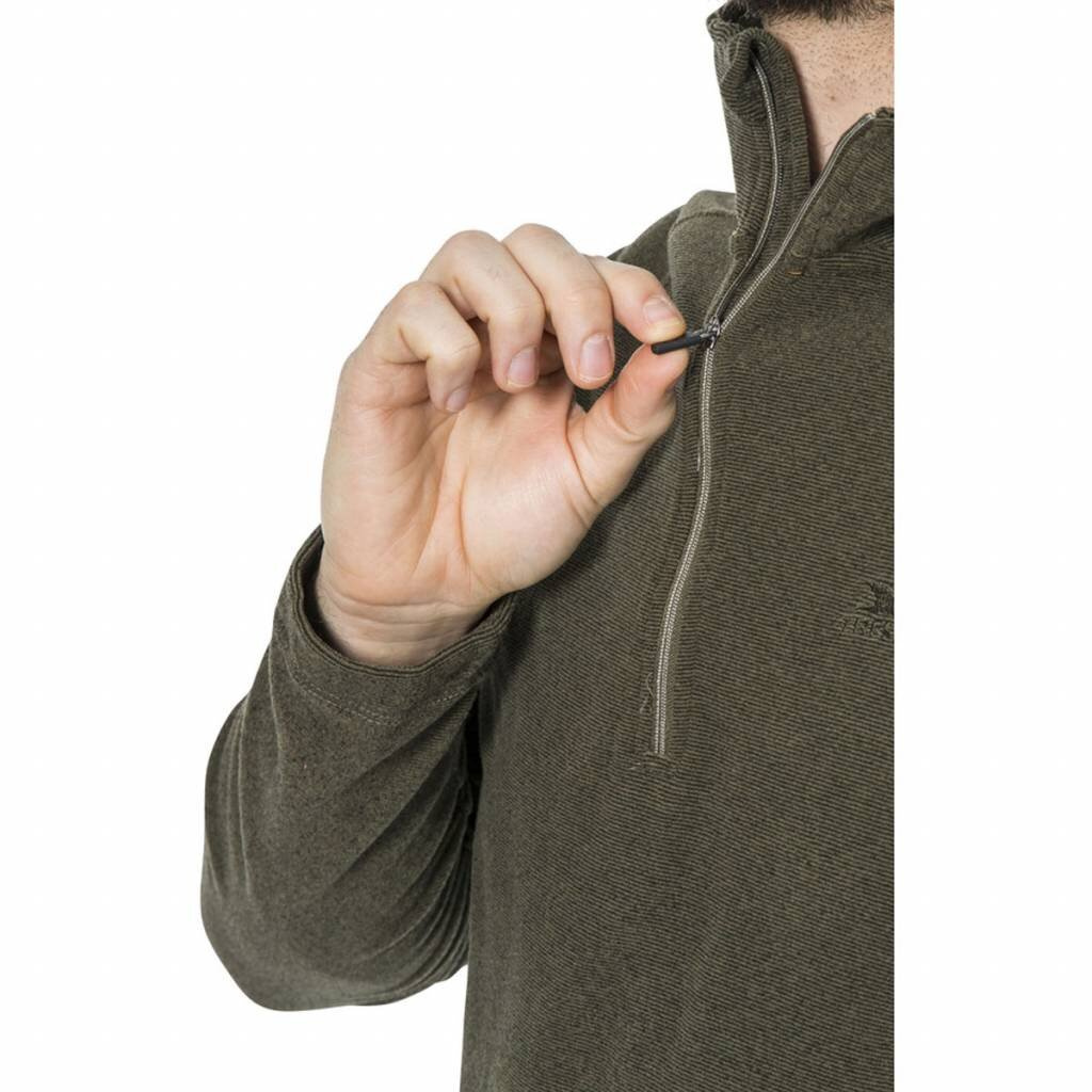Mikina s vyšším stojáčkem u krku a s 3/4 zipem.
