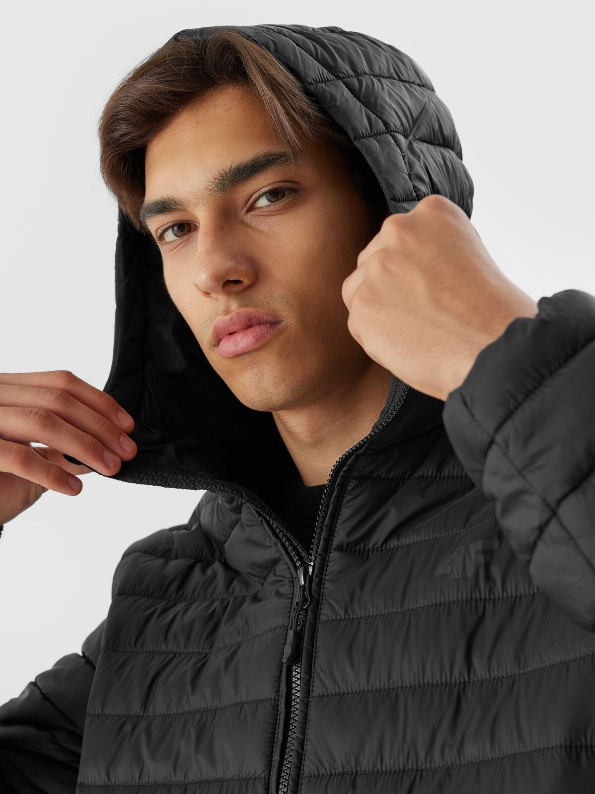 Pánská péřová bunda 4F je lehká a má pohodlný střih, který neomezuje v pohybu. Bunda s kapucí má měkkou a lehkou péřovou výplň ze 100% recyklovaného polyesteru. Vnější materiál jsme pokryli hydrofobní vrstvou, abychom zabránili nadměrné absorpci vlhkosti. Pohodlná neodnímatelná kapuce vás ochrání před chladem a kapsy na přední straně pojmou nezbytné drobnosti.