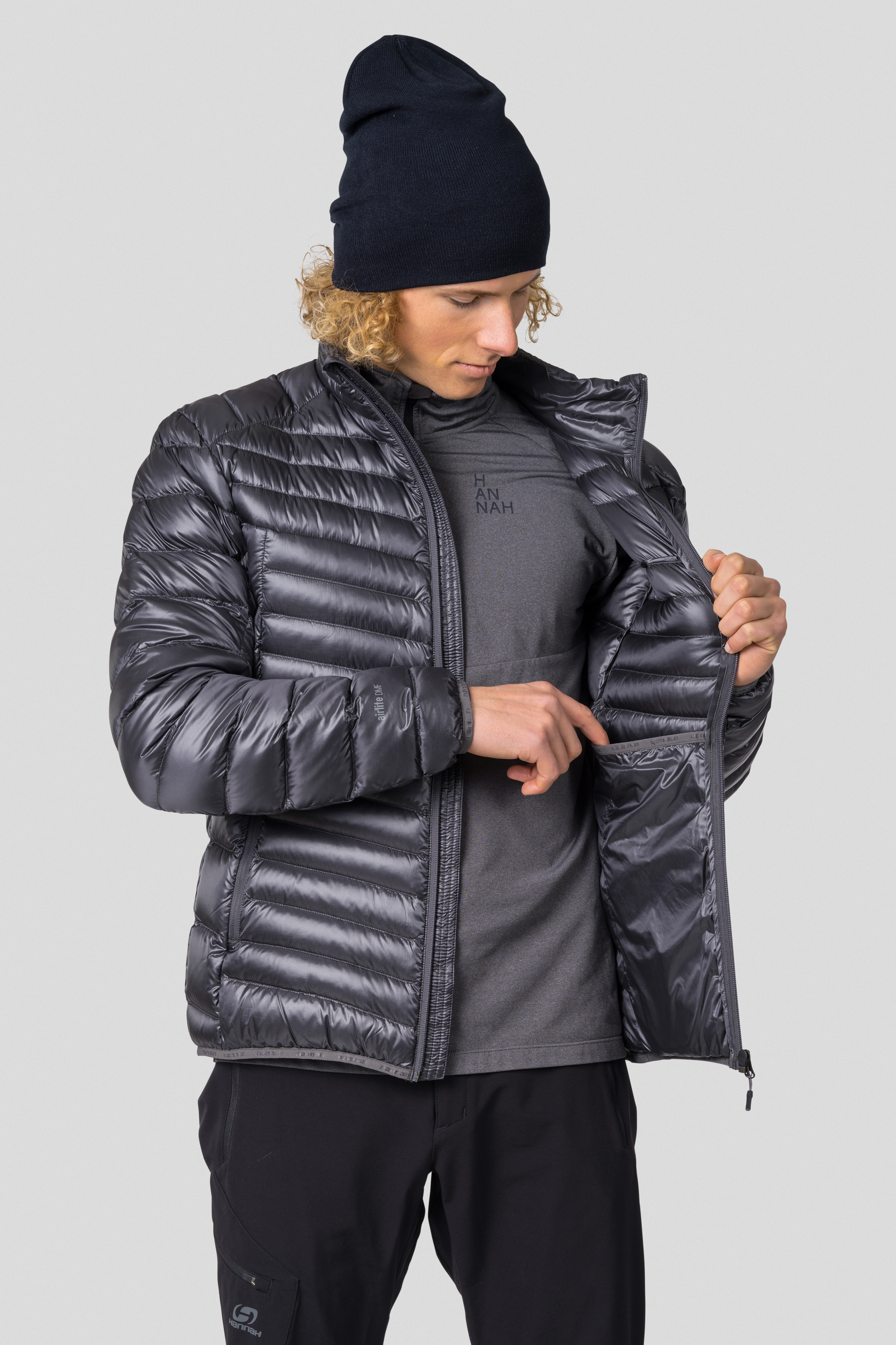 Lehká zateplovací péřová bunda Hannah Adrius, na první pohled zaujme zajímavým vzhledem struktury materiálu a prošitím. Je vyrobená z materiálu s vysokou hustotou tkaní Airlite DMF s vodoodpudivou úpravou a je komorově plněná kachním peřím s certifikací Bluesign. Bunda má proto široké možnosti využití, přes vysokohorskou turistiku, ferraty, trekking a ostatní aktivní sporty, až po cestování. Bunda se dá jednoduše sbalit do transportního obalu, který vám v batohu nezabere zbytečně moc místa. Na hlavním dvoucestném zipu i na hlavních kapsách najdeme kvalitní YKK zipy. Stojáček dobře obepne krk. Anatomicky tvarované rukávy i spodní okraj jsou také lemované gumou. Vyúžený střih Alpine skvěle sedí.