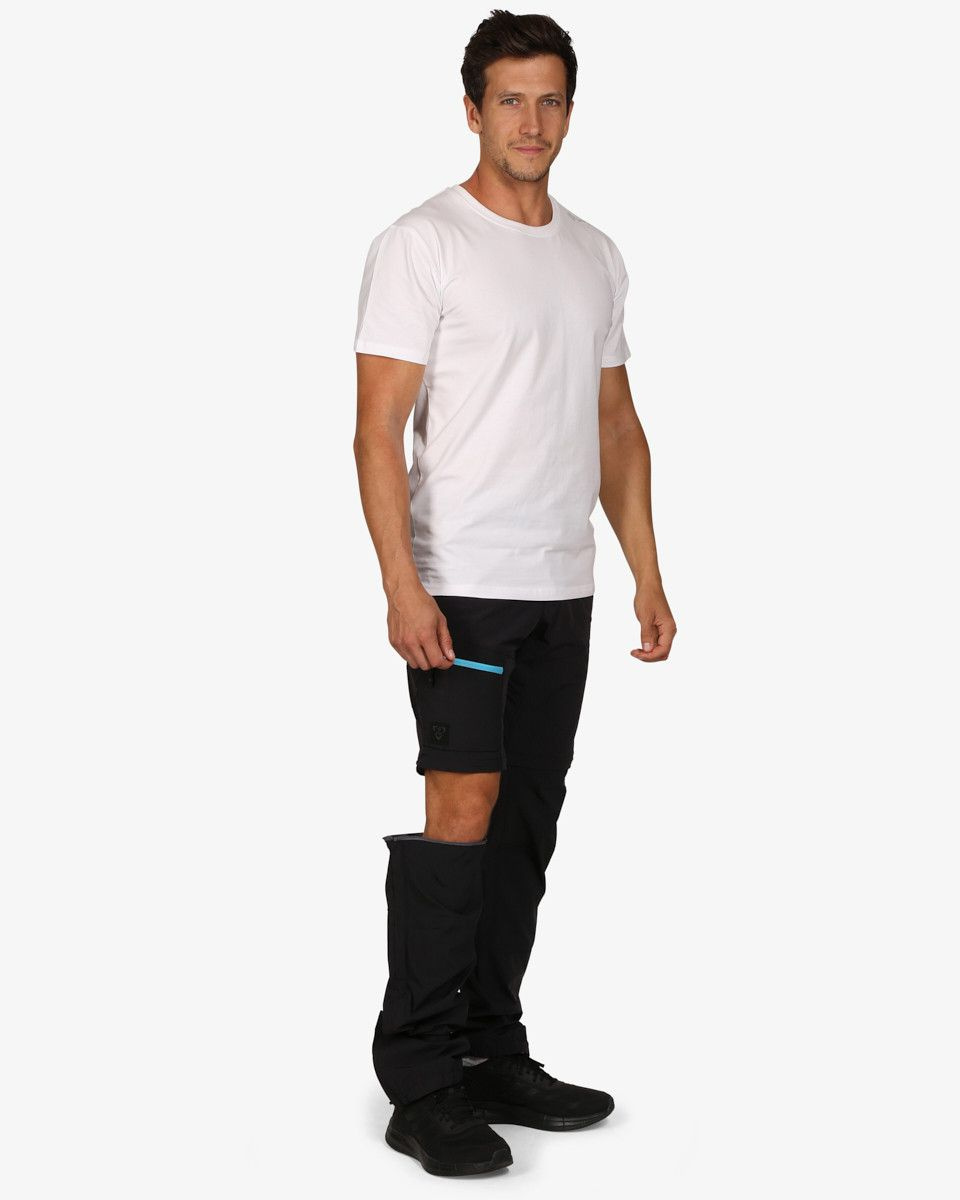 Kilpi HOSIO-M jsou propracované pánské kalhoty 2 v 1 na outodorové aktivity, turistiku nebo denní nošení ve volném čase. Jsou vyrobeny z materiálu SIBERIUM, který je velmi lehký, prodyšný a vysoce elastický. Jejich největším přínosem je možnost odepnutí nohavic nad koleny, takže z kalhot uděláte jednoduše kraťasy. Tato funkce je velmi praktická na cesty nebo celodenní výšlapy. Oblast kolen a hýždí je zesílená ripstopovým materiálem odolnějším vůči oděru. Kalhoty mají tři zipové kapsy, klasické zapínání s poutky na pásek. Lemy nohavic mají ukončení do gumy a kovový háček, pomocí kterého připevníte nohavice na outdorovou obuv. Kilpi HOSIO-M nabízíme v několika stylových barvách.