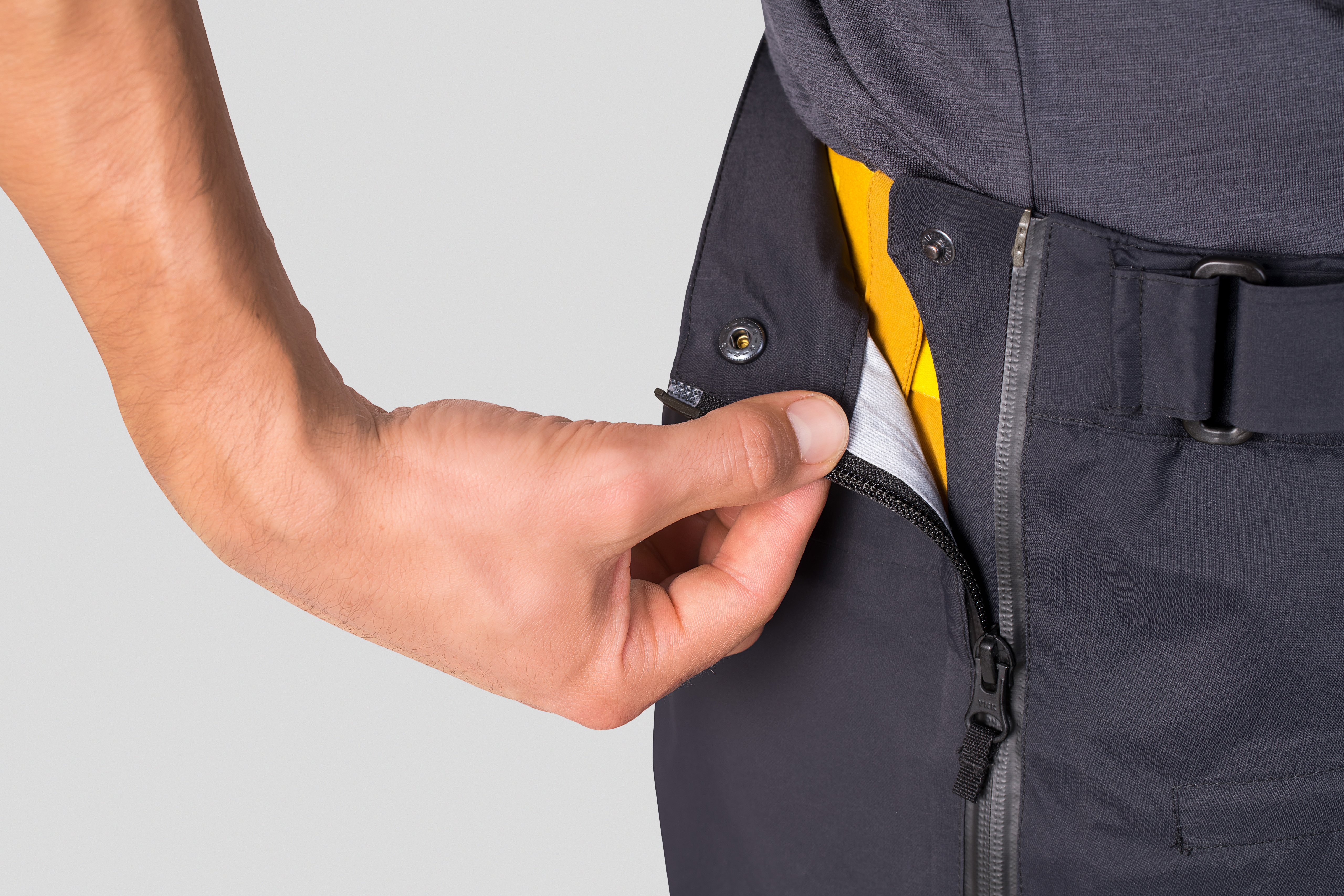 Pánské technické převlekové kalhoty Mirage Pants se skvěle hodí na horolezectví, vysokohorskou turistiku i vícedenní treky v náročných podmínkách. Jsou vyrobené z tří vrstevého technického materiálu s membránou Climatic Pro Extreme s parametry vodního sloupce a prodyšnosti 20 na 20, svrchní vodoodpudivou úpravou DWR C6. Materiál je nepromokavý a větruvzdorný, ale zároveň zůstává prodyšný. Kalhoty mají navíc podlepené švy a voděodolné zipy YKK v nohavicích, aby byla ochrana před deštěm dokonalá. Nohavice jsou celorozepínací s dvoucestnými zipy, mají anatomicky tvarovaná kolena, zpevněnou vnitřní část a regulovatelný spodní okraj. Obvod pasu lze regulovat pomocí patek na suchý zip, takže si kalhoty můžete maximálně přizpůsobit vašim potřebám. Vepředu mají kapsu na zip. Klasický Regular fit sedí většině typů postav. Použitý materiál splňuje bluesign standard.