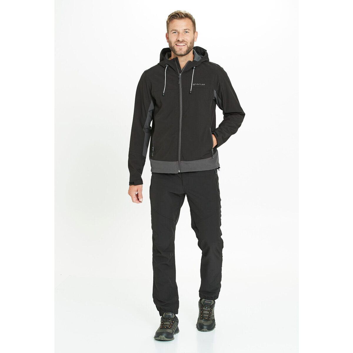 Tato softshellová bunda Whistler Ryder pro muže je funkční a stylový model, který poskytuje dobrou ochranu proti dešti a chladu. Bunda Ryder je navržena s pevnou kapucí, kterou lze nastavit u krku a po okrajích pro optimální uchycení kolem hlavy. Model má průběžný zip YKK s chráničem brady, na zápěstí je nastavitelný suchý zip a ve spodní části nastavitelná elastická šňůrka. Softshellová bunda je větru a voděodolná a vnitřek je podšitý pro měkké a hřejivé pohodlí.