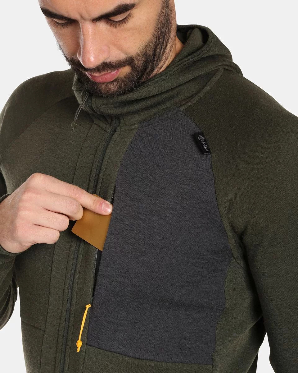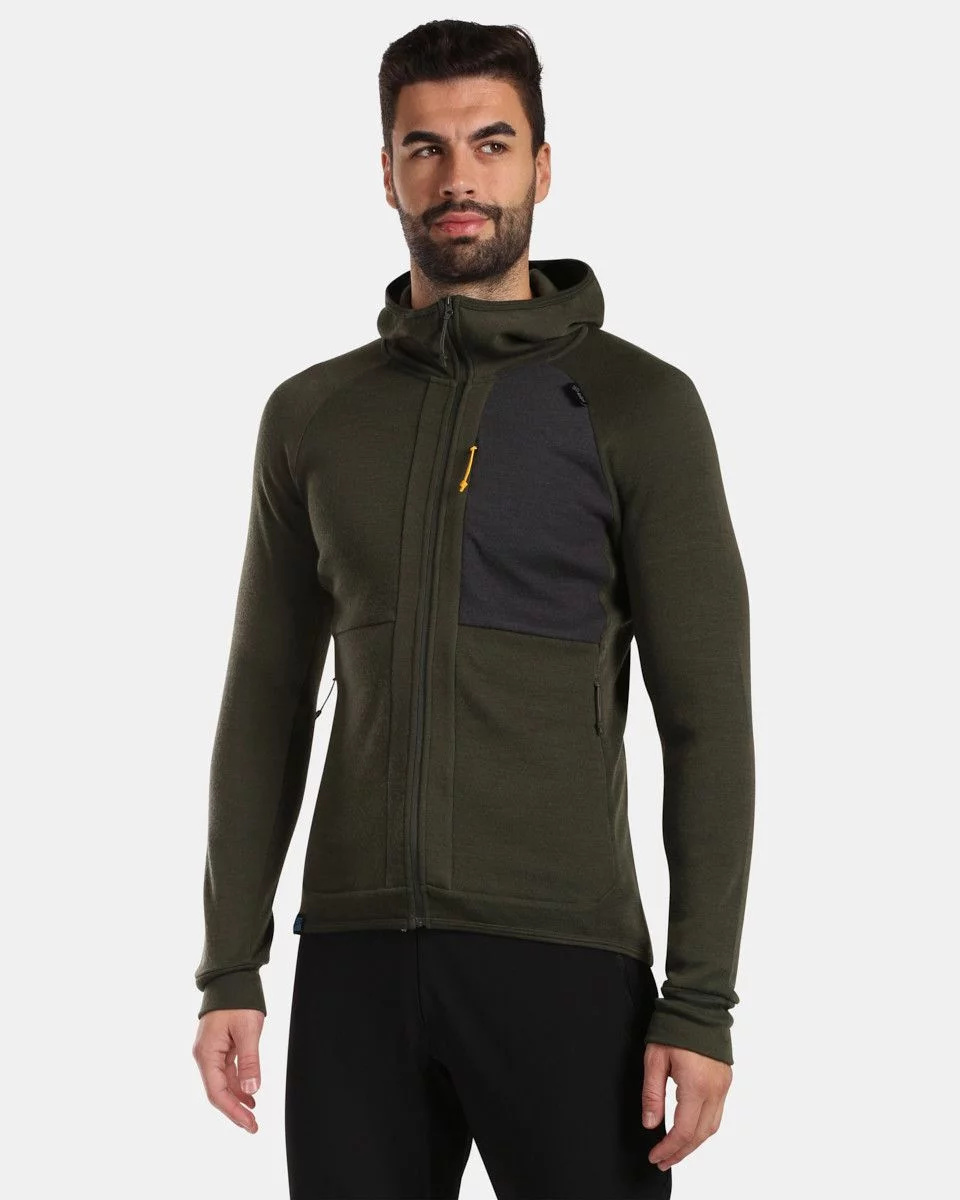 Pánský celorozepínací svetr s kapucí, vyrobený z merino vlny, to je Kilpi MERINI-M, který vás zahřeje a dodá vám pohodlí. Vyroben z hebkého, hřejivého úpletu ze směsi MERINO VLNY a syntetických vláken, kde se spojují nejlepší vlastností obou z vláken. Vlna je přírodní vlákno, přirozeně antibakteriální, které zahřeje, pohlcuje pachy a je obnovitelné. Vlákno polyesteru zvyšuje odolnost úpletu v tahu a zvyšuje jeho pevnost. Decentní design a pohodlný regular střih svetru se skvěle hodí na denní nošení, na volnočasové aktivity nebo sportovní aktivity od podzimu do jara. Mikinu Kilpi MERINI-M vám nabízíme v moderní khaki barvě.
