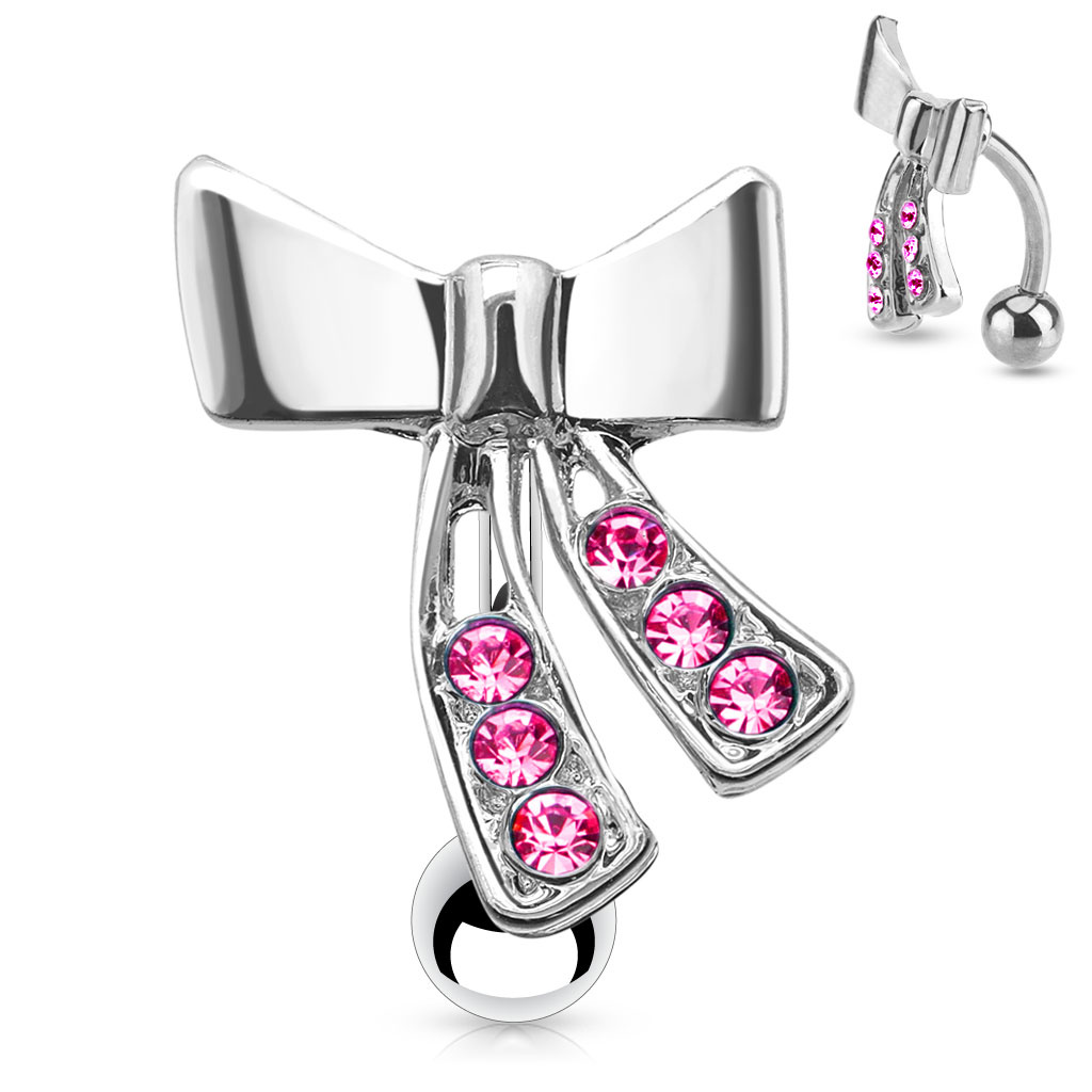 Piercing do pupíku - mašle s růžovými zirkony