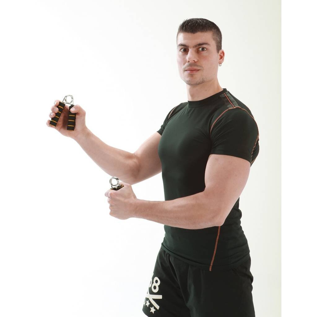 Zlepšení síly a pevnosti v zápěstích, prstech a předloktí. Chromované ocelové pružiny. Rukojeti z měkké pěny. Prodává se v páru.