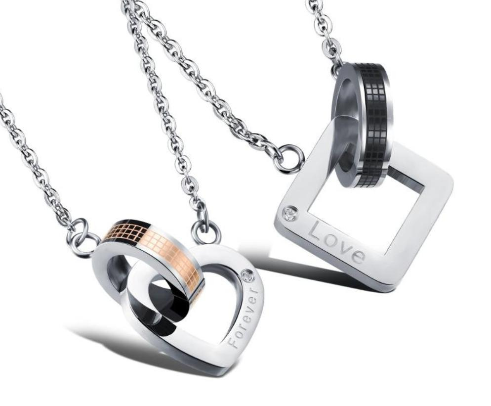 Unikátní přívěsky pro dva vyrobené z chirurgické oceli.Je zdoben drobným kubickým zirkonem a nápisem „Forever Love“.