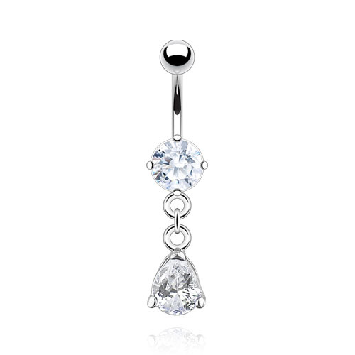 Rhodiovaný piercing do pupíku - oválný krystal