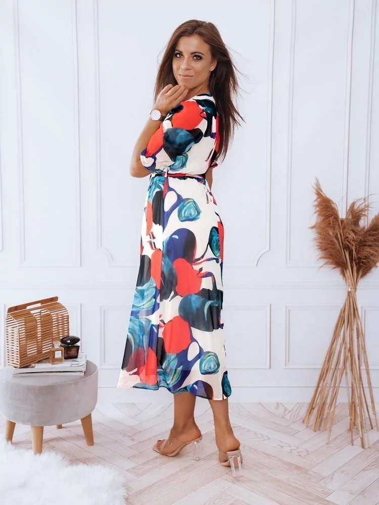 Nádherné a fenomenální – tato slova dokonale vystihují šaty VALLERIO. Jedinečný potisk se bude hodit na skvělé výlety i na každodenní použití. Model má výstřih do V a podšívku. Elastický pas a vázání označí pas. Materiál je úžasný na dotek. Musí mít!