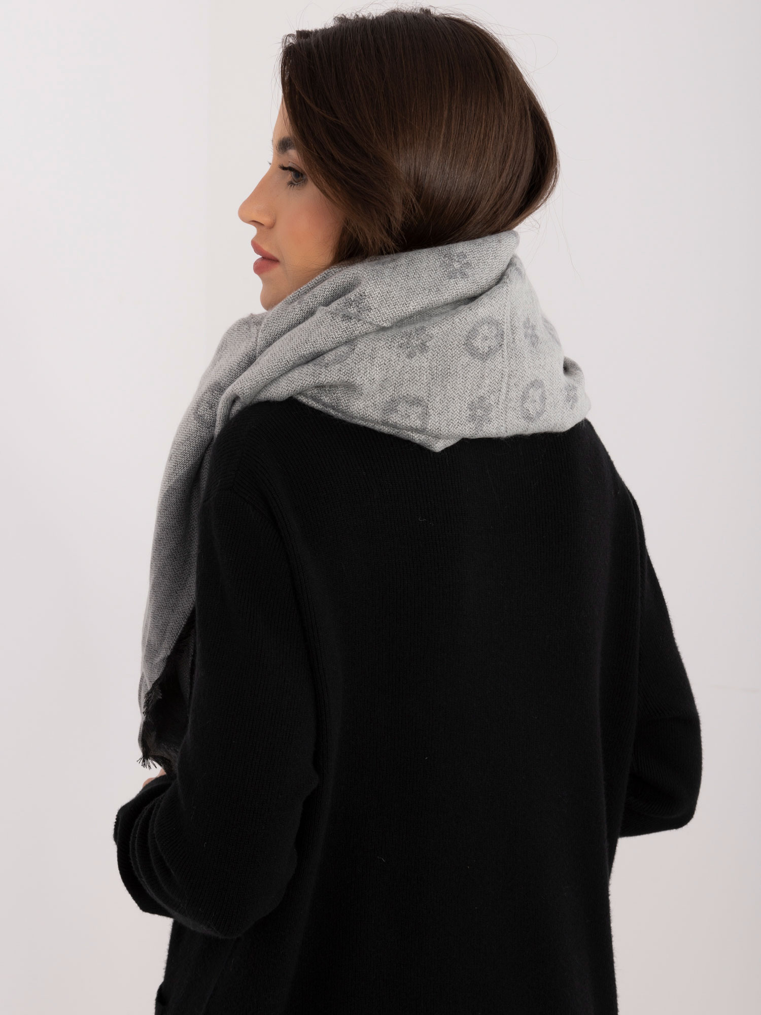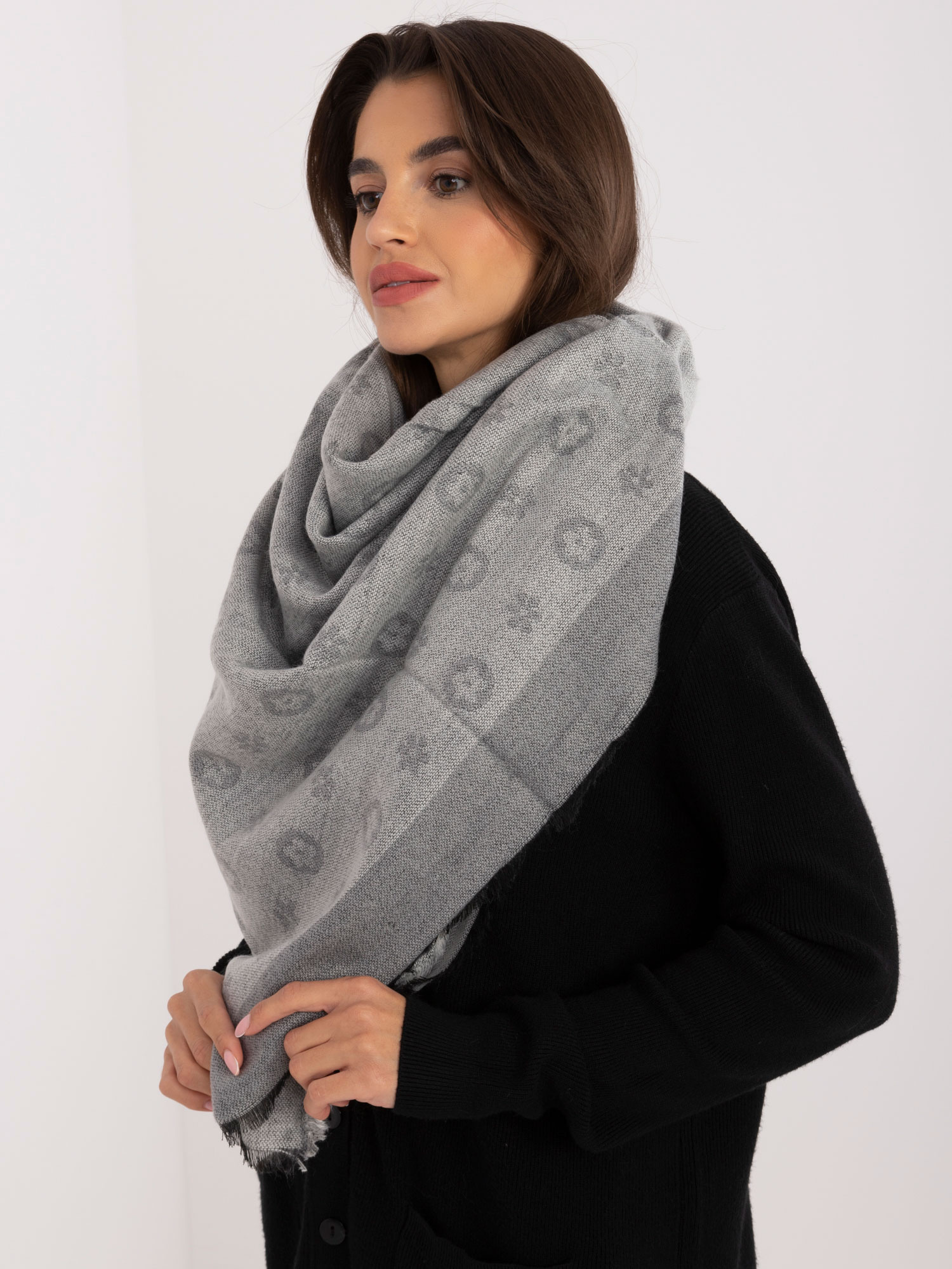 Šedý vzorovaný dámský šátek Velikost: JEDNA VELIKOST