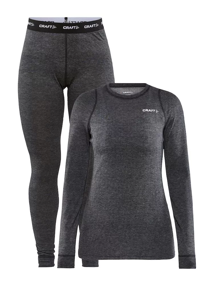 Dámský vysoce funkční set CRAFT CORE Wool Merino kombinující přednosti přírodních materiálů jako je merino vlna s umělými vlákny.