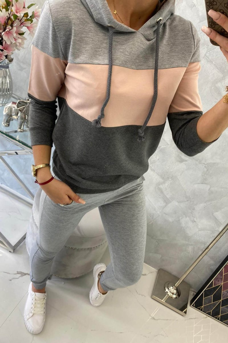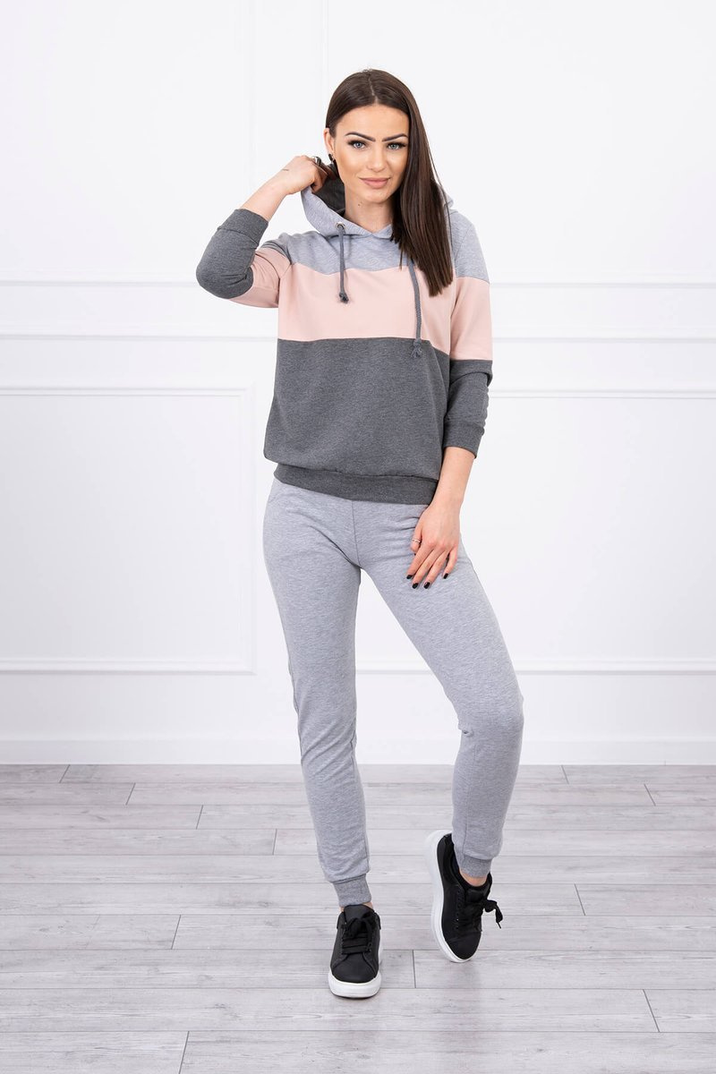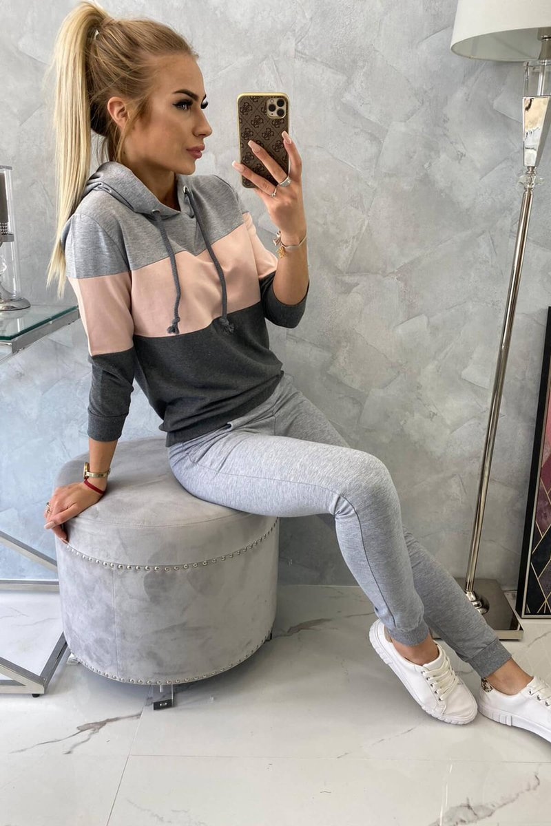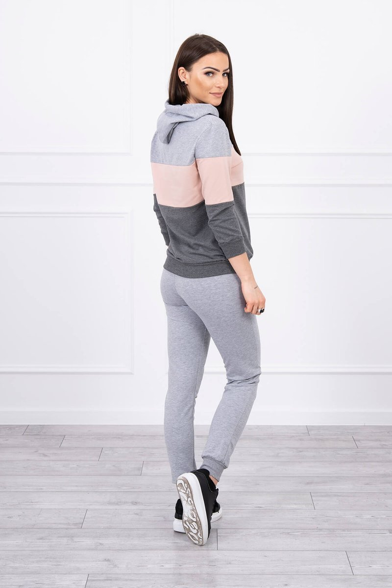 Set s barevnými pruhy šedá+pudrová růžová UNI