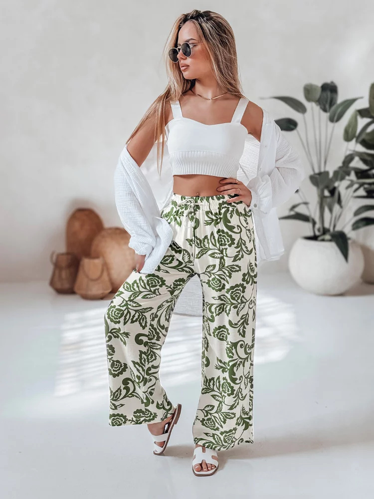 Spodnie damskie wide leg w kwiaty LOVEGARDEN zielone Dstreet UY2656 XL