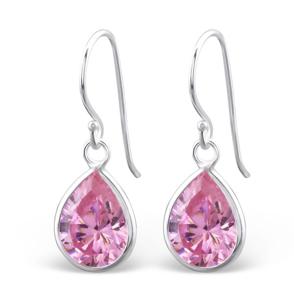 Stříbrné visací náušnice v podobě kapky která jsou zdobena růžovým třpytivým zirkonem. Jemné a slušivé náušnice.Materiál šperku: Stříbrol Rozměry: 8x12 mm