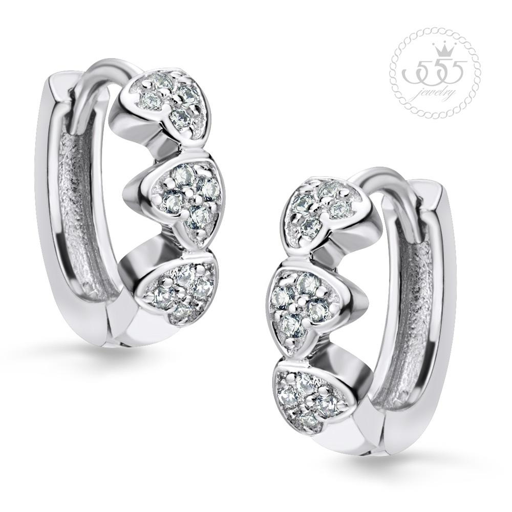 Stříbrné náušnice kroužky ozdobené srdíčky a drobnými zirkony