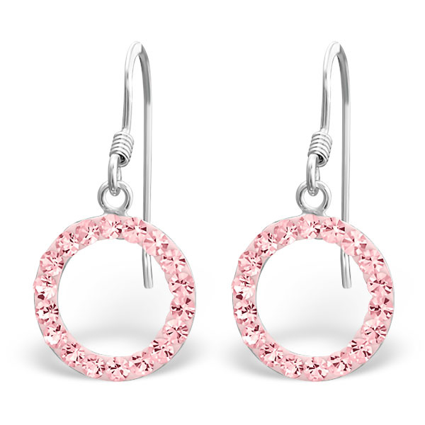 Stříbrné visací náušnice v podobě kruhů, které jsou dokola osázené malými třpytivými zirkony v růžové barvě. Tyto náušnice vypadají dobře při každé příležitosti - jsou krásné a elegantní.Materiál šperku: Stříbrol Rozměry: 12 mm