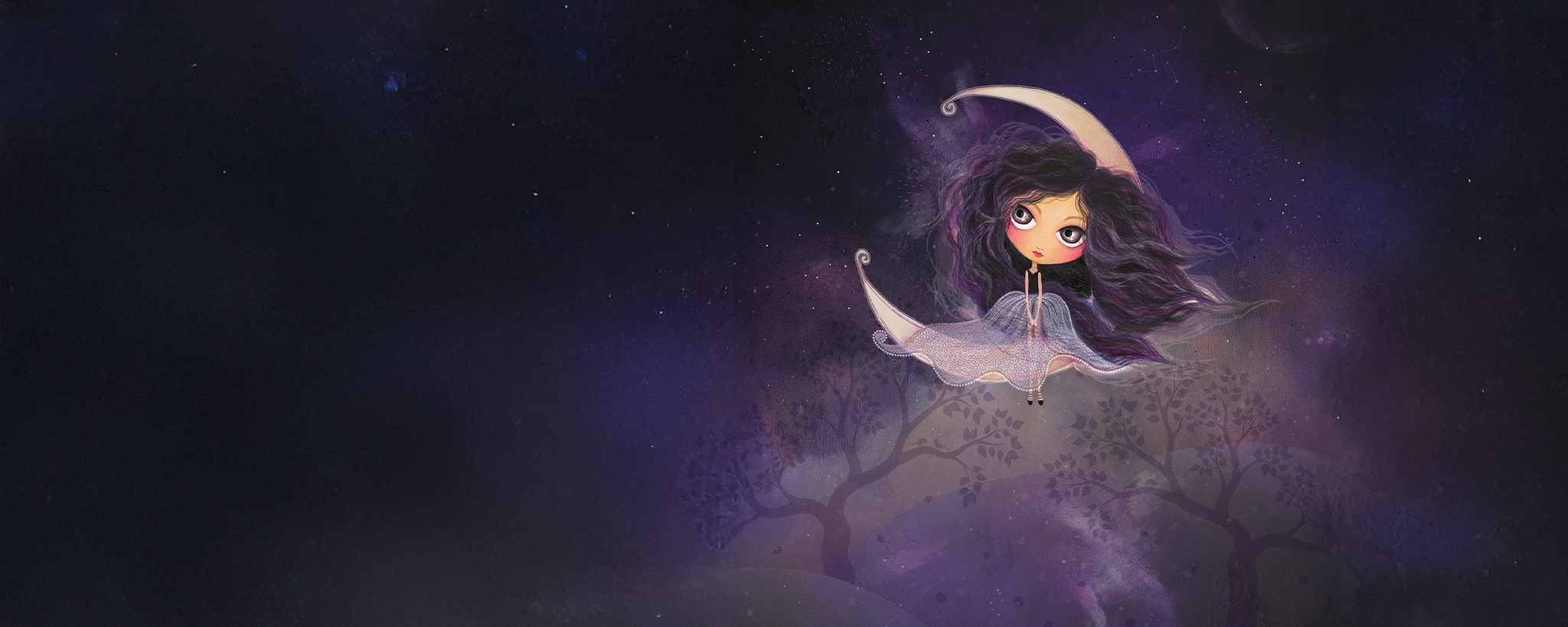 - Nebe plné hvězd, zářivý měsíc a okatá panenka