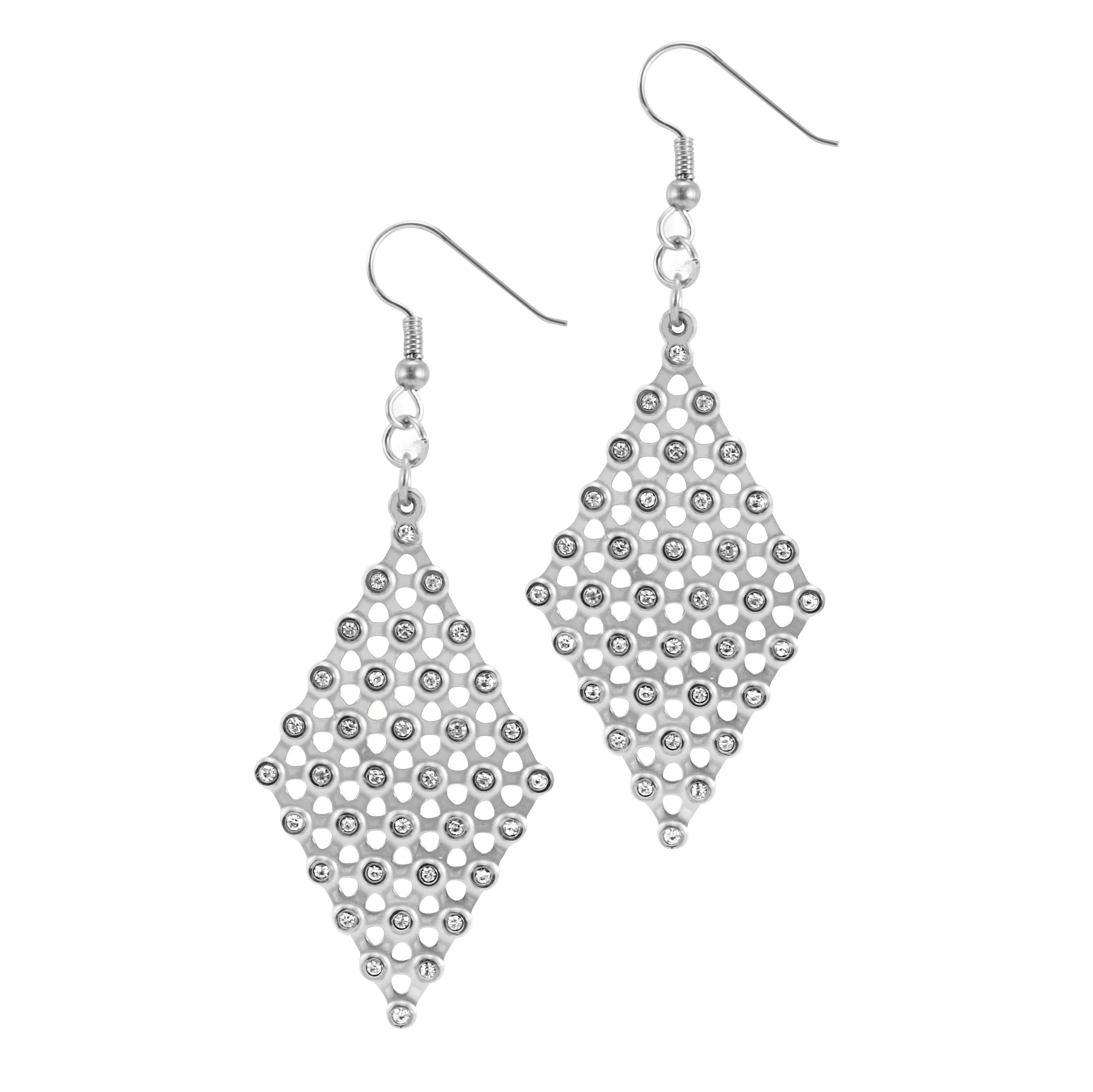 Visací náušnice z chirurgické oceli - síť zirkonů
