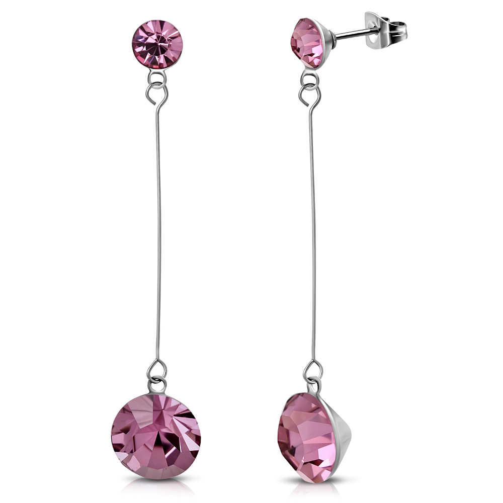 Visací ocelové náušnice - světle růžový kamínek