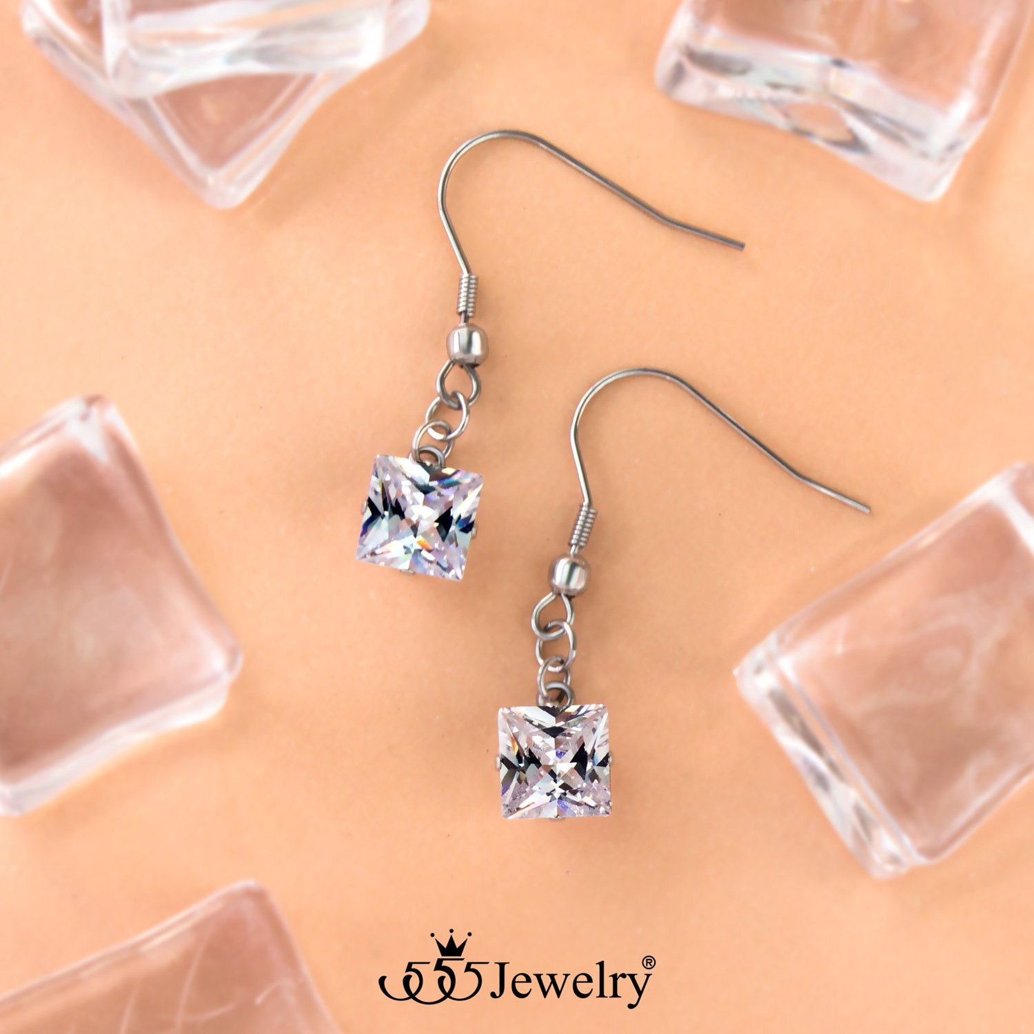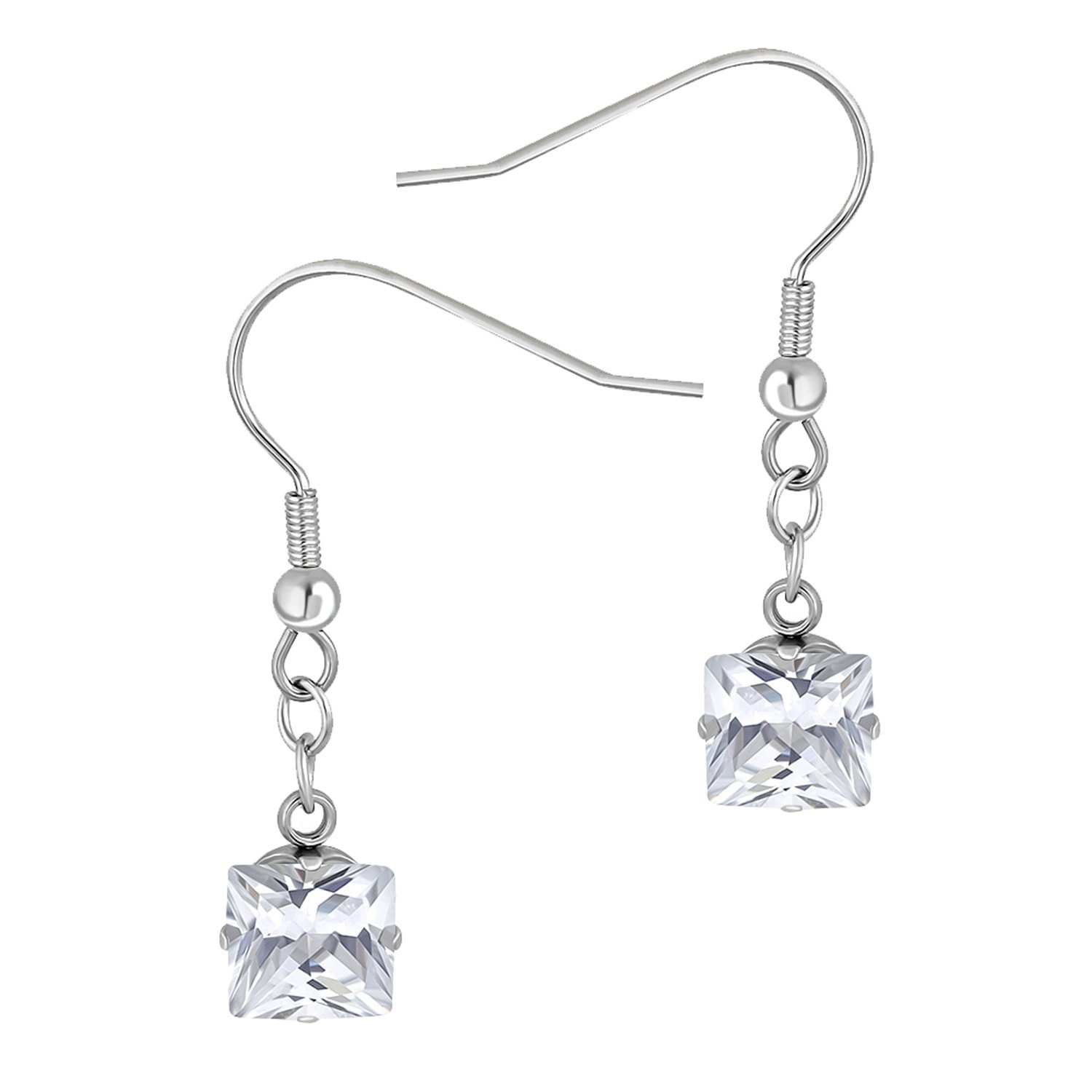 Závěsné náušnice z chirurgické oceli s čirým zirkonem - stříbrné